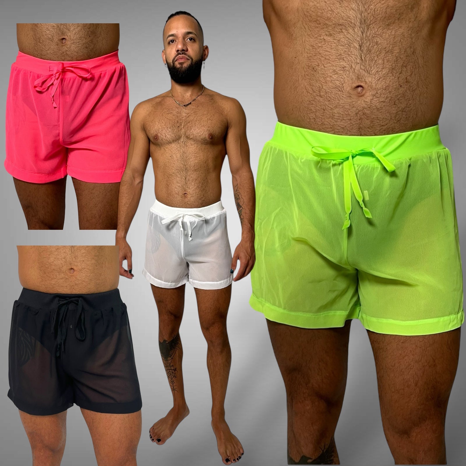The ultimate sheer short. We've created a product that has the perfect amount of naked while being completely covered. Slightly sheer, non stretch chiffon short with matching ribbing waistband and drawstring. We've eliminated the side seam on this pattern for a super smooth clean look.